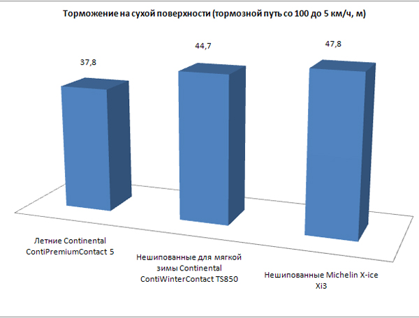 Помните также о недопустимости использования зимних шин летом. Зимние шины, особенно липучки скандинавского типа, имеют очень мягкую резину, которая ведет себя как кусок сливочного масла на горячем асфальте в знойную погоду. Плюс так необходимые зимой ламели, которые встают веером при резком торможении, уменьшая площадь соприкосновения с покрытием дороги.  Задумайтесь о том, что «добивая» или «докатывая» зимние шины летом ваш тормозной путь в экстренных условиях может оказаться в 1.5 раза выше. То есть при резкой остановке даже с безопасных 50 км/ч машина пройдет не 10–12, а 15–18 метров, а на влажной дороге эти цифры будут еще выше. А при двукратном увеличении скорости разница между летней и зимней покрышкой даже на сухом покрытии может дойти до 20–25 метров! Вы только задумайтесь — 20 лишних метров тормозного пути! Это ведь длина 4 впереди стоящих автомобилей!